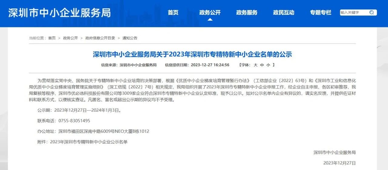 12月27日,深圳市中小企业服务局公示了“2023年深圳市专精特新中小企业”名单。伟徳体育官网入口凭借在技术研发、产品创新、市场拓展等方面取得的突出成绩,成功获评“2023年深圳市专精特新中小企业”。