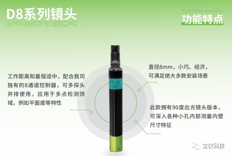 此款镜头采样频率为3000Hz/s,线性精度可达±0.08µm,装配的90度出光镜头角度为正负18°,可配合机器深入螺母内壁进行非接触式动态扫描,覆盖螺纹的深度宽度,得到轮廓数据从而计算出每个螺纹的精确长度,确保螺母加工环节的精确度,提高生产效率。