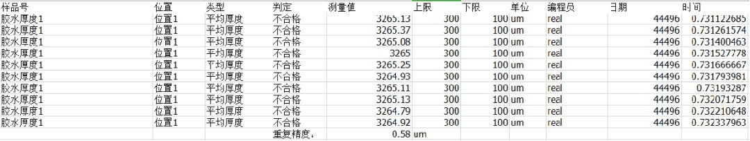 2、重复测试稳定性好,10次测试重复精度为0.58um。